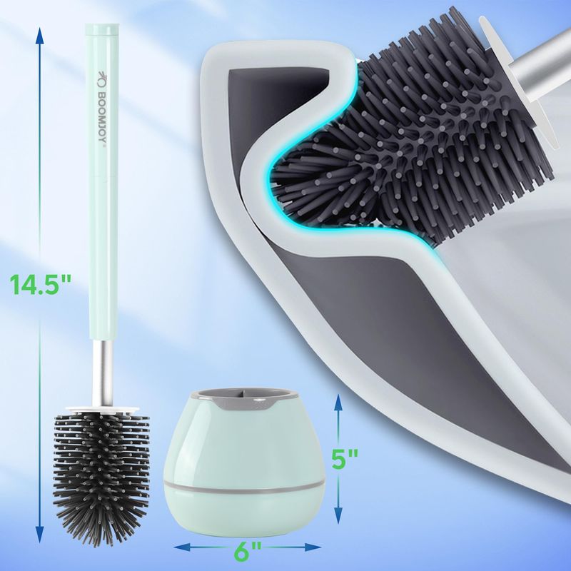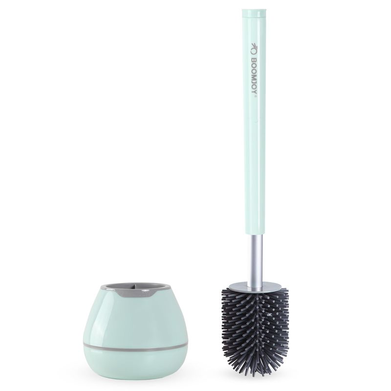 BOOMJOY Cepillo de inodoro con soporte, cepillo limpiador de inodoro de silicona con pinzas para