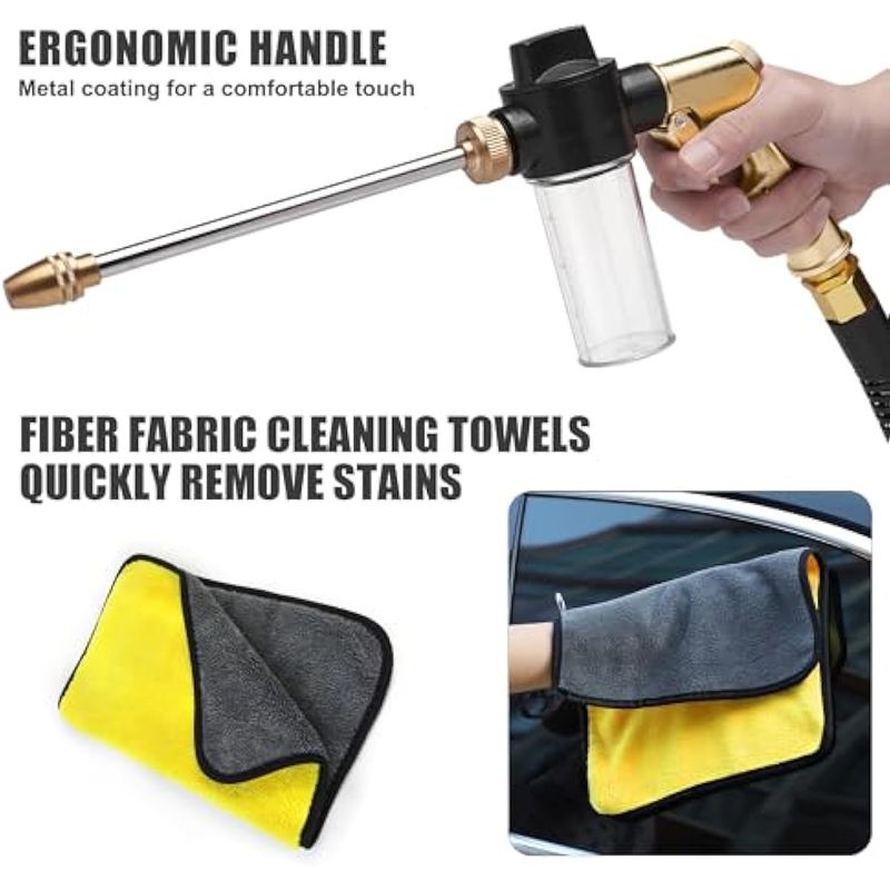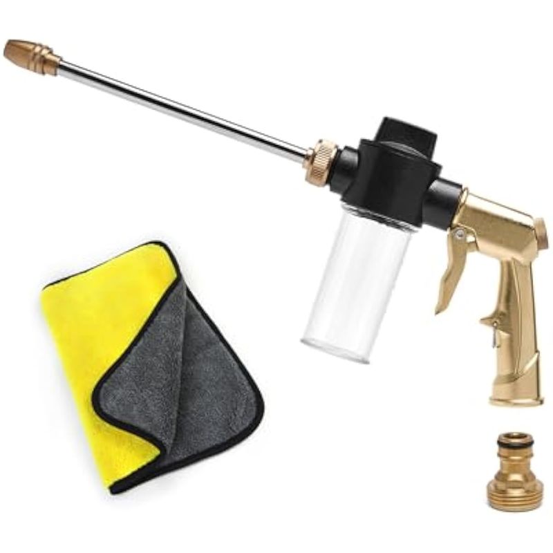 BOQUILLA DE MANGUERA DE JARDíN DE METAL RESISTENTE, PISTOLA DE ESPUMA DE ALTA PRESIóN ROCIADOR DE LAVADO DE AUTOS CON BOTELLA DISPENSADORA DE JABóN DE PLáSTICO DE 3.5 ONZAS LíQUIDAS + TOALLA