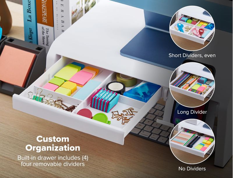 Bostitch Konnect - Elevador de monitor ajustable con cajón y soporte para teléfono celular, soporte