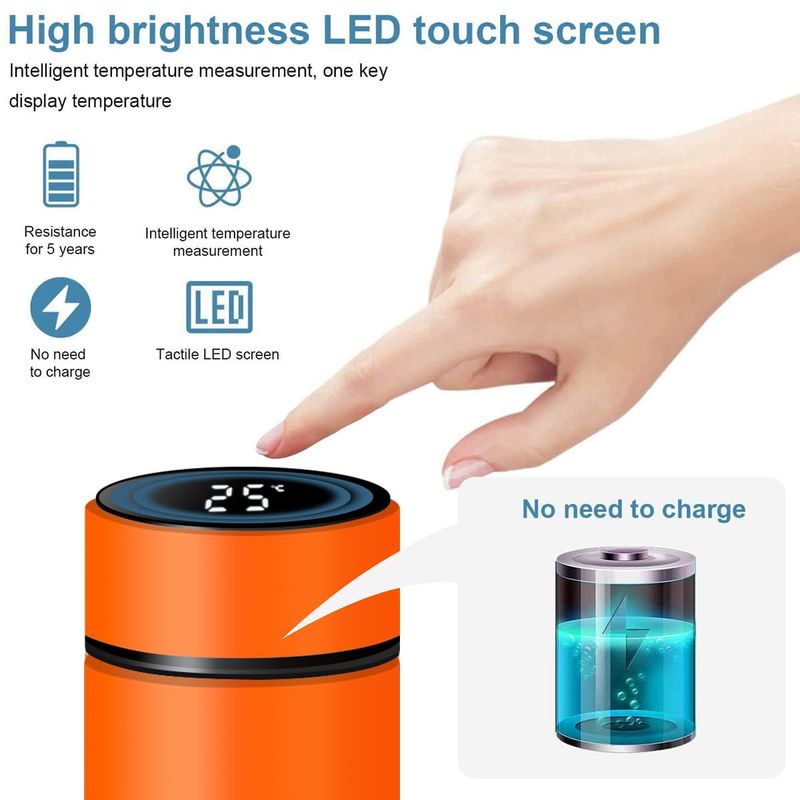 Doble aislamiento. El hervidor de acero inoxidable está equipado con doble pared de aislamiento, permanece la temperatura óptima de calor y frío. La cápsula está equipada con pantalla táctil LCD HD para indicar la visualización de la temperatura del agua en tiempo real. Te permite saber la temperatura de bebida más adecuada sin necesidad de abrir la tapa.