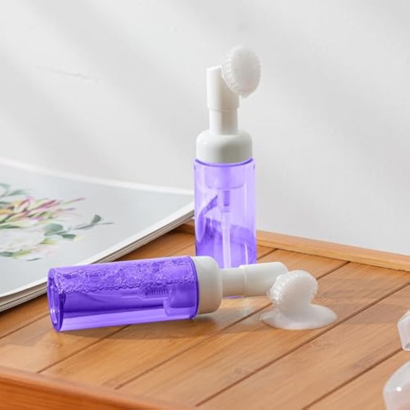 BOTELLA DE ESPUMA DE 2 OZ (3 PIEZAS) CON CEPILLO, DISPENSADOR DE BOMBA DE ESPUMA VACíA PARA JABóN DE MANOS, LIMPIADOR DE PESTAñAS, CHAMPú PARA VIAJAR (2.3 ONZAS LíQUIDAS, MORADO)