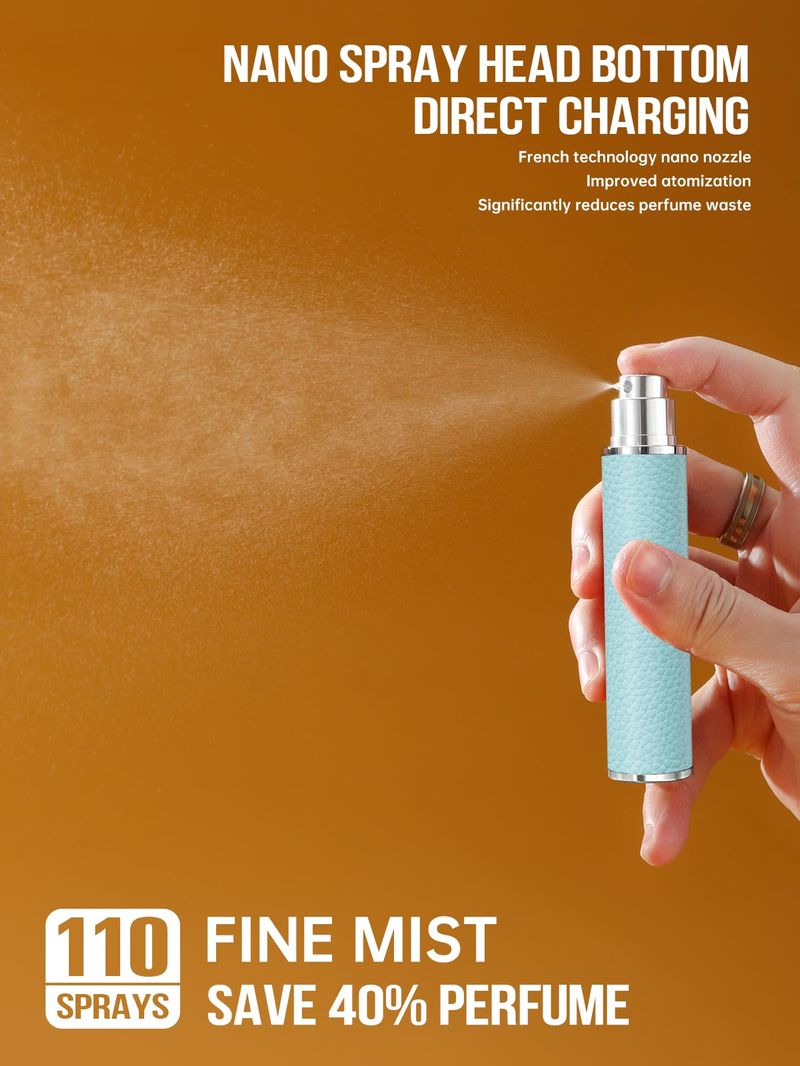 BELLEZA Y SALUDBELLEZA Y CUIDADO CORPORALMAQUILLAJEBotella recargable de viaje de perfume, pulverizador atomizador de cuero genuino de 0.3 fl oz para