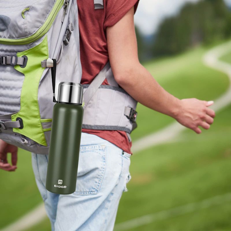 Mantiene el calor y el frío: nuestra botella de agua de metal tiene aislamiento térmico de doble capa y aislamiento térmico al vacío. Tiene un buen rendimiento a prueba de fugas y puede mantener la bebida fría o caliente durante 12 horas. No habrá condensación.