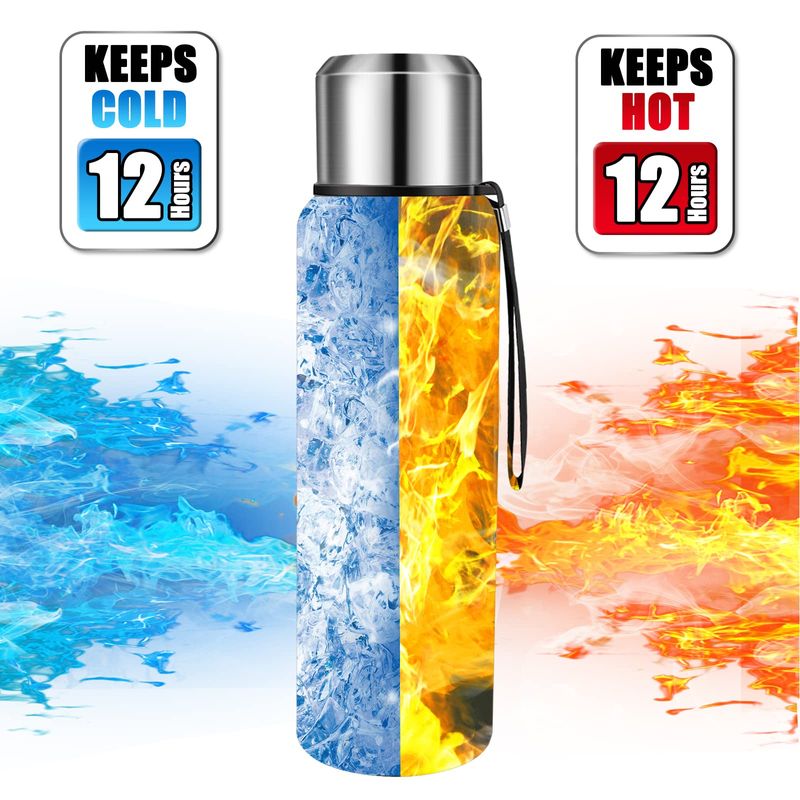 Mantiene el calor y el frío: nuestra botella de agua de metal tiene aislamiento térmico de doble capa y aislamiento térmico al vacío. Tiene un buen rendimiento a prueba de fugas y puede mantener la bebida fría o caliente durante 12 horas. No habrá condensación.