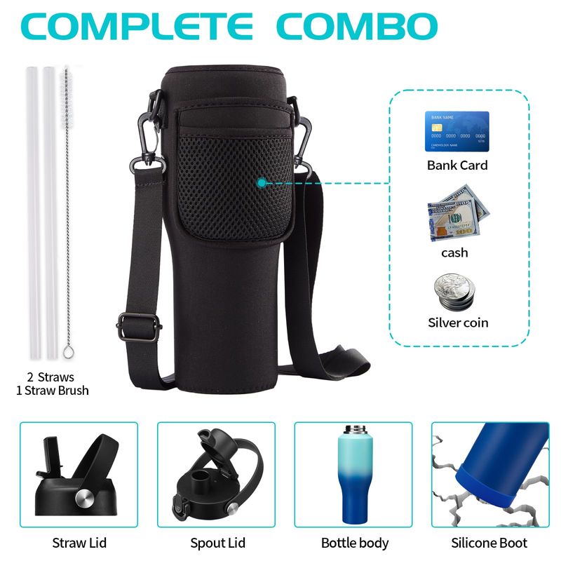 Botellas de agua aisladas de acero inoxidable de 40 onzas, frías de 48 horas y calientes 24 horas,