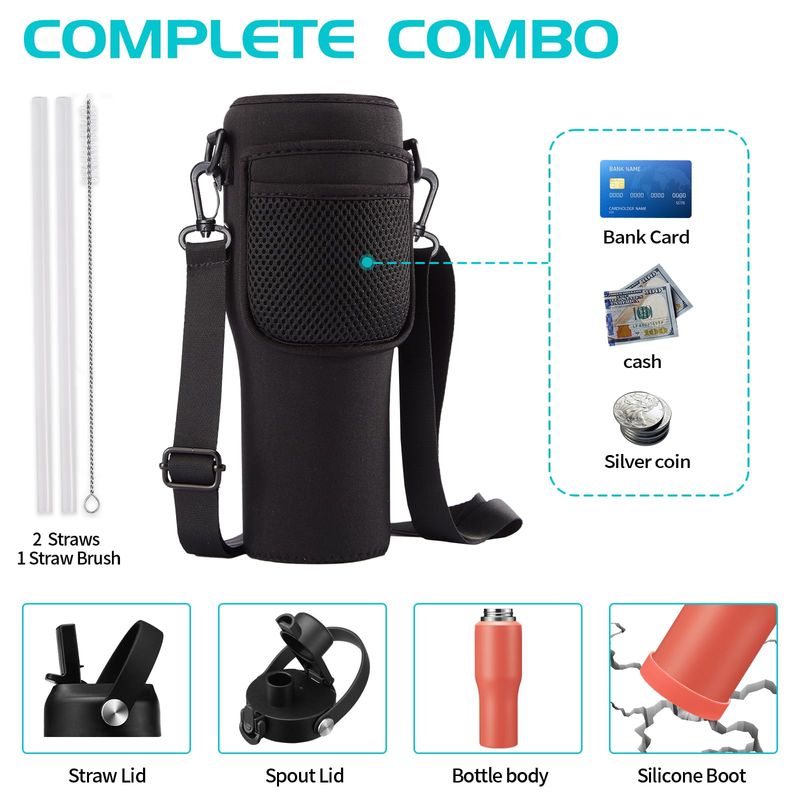 Botellas de agua aisladas de acero inoxidable de 40 onzas, frías de 48 horas y calientes 24 horas,