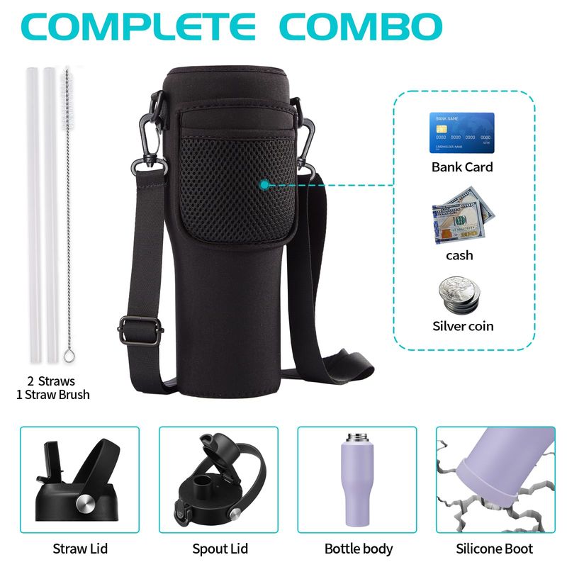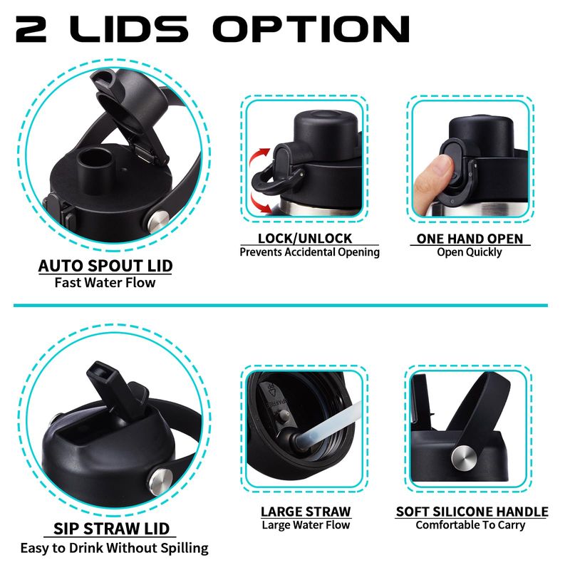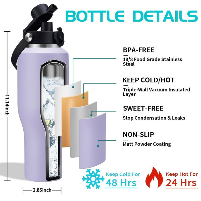 Botellas de agua aisladas de acero inoxidable de 40 onzas, frías de 48 horas y calientes 24 horas,