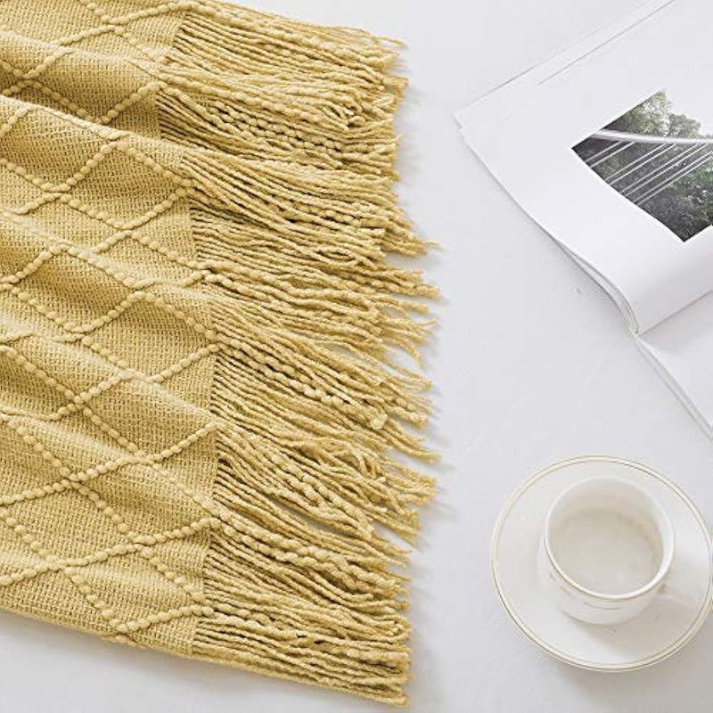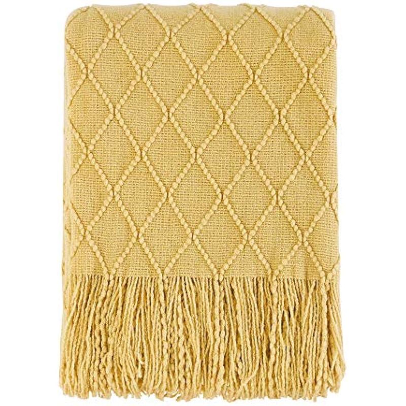 Bourina - Manta decorativa de punto para sofá, suave, texturizada, de color liso, de 50 x 60