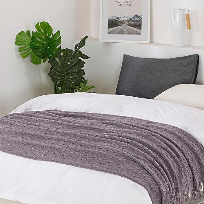 Bourina - Manta decorativa de punto para sofá, suave, texturizada, de color liso, de 50 x 60