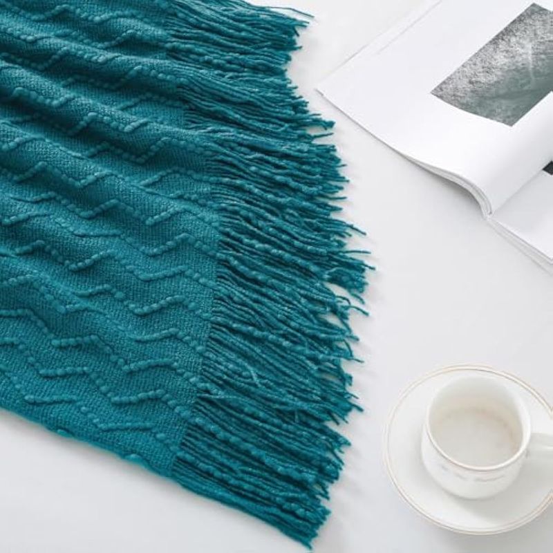 Bourina - Manta decorativa de punto para sofá, suave, texturizada, de color liso, de 50 x 60