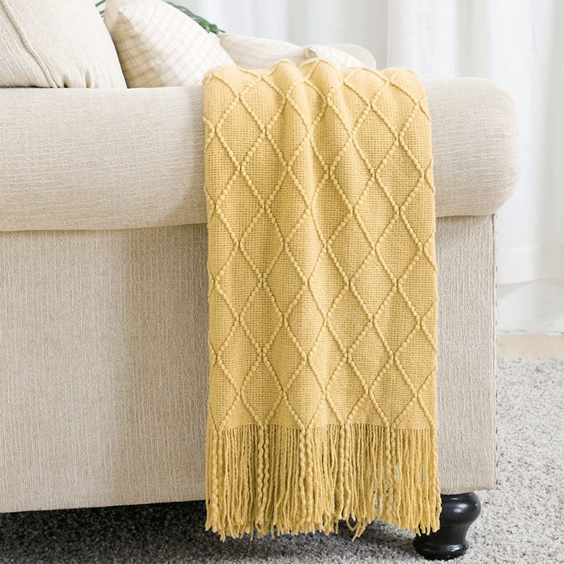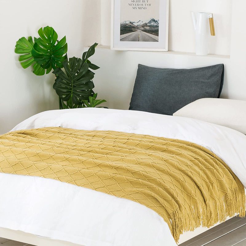 Bourina - Manta decorativa de punto para sofá, suave, texturizada, de color liso, de 50 x 60