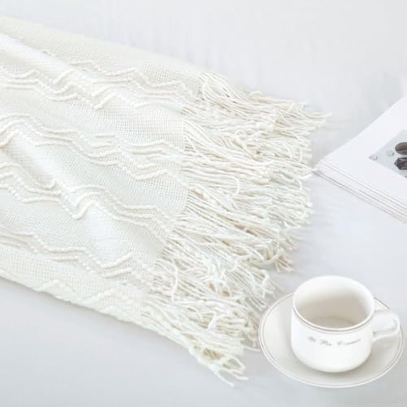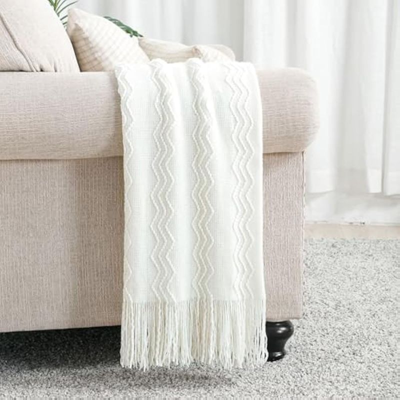 HOGARBLANQUERIACUBRECAMABourina - Manta decorativa de punto para sofá, suave, texturizada, de color liso, de 50 x 60