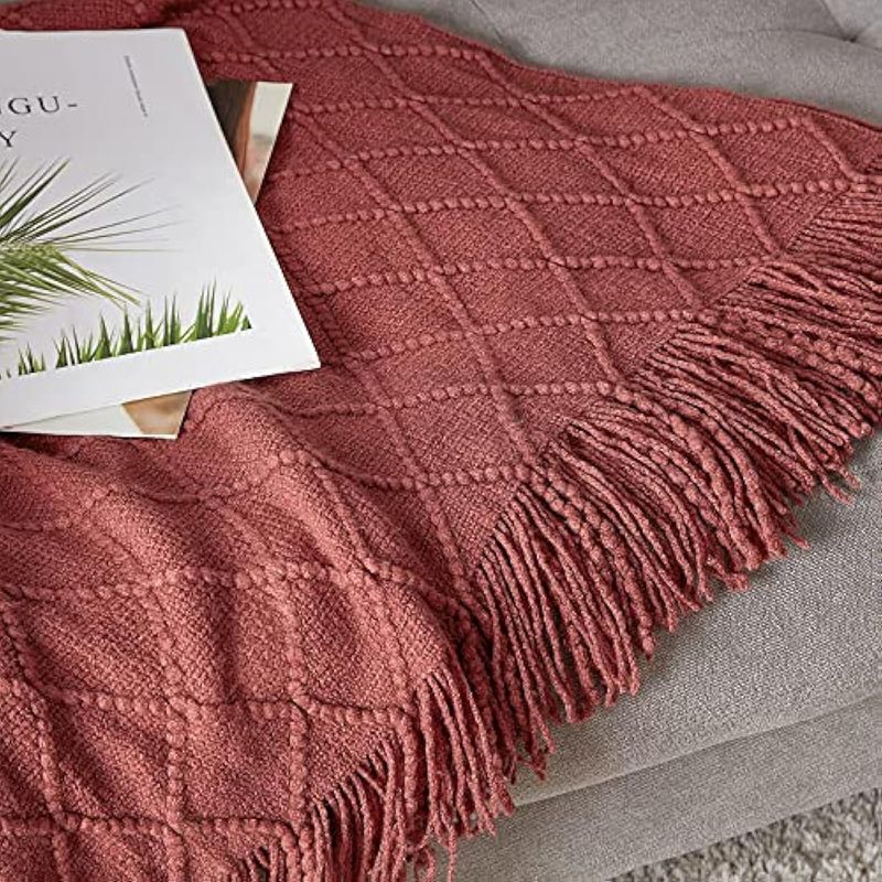 Bourina - Manta decorativa de punto para sofá, suave, texturizada, de color liso, de 50 x 60