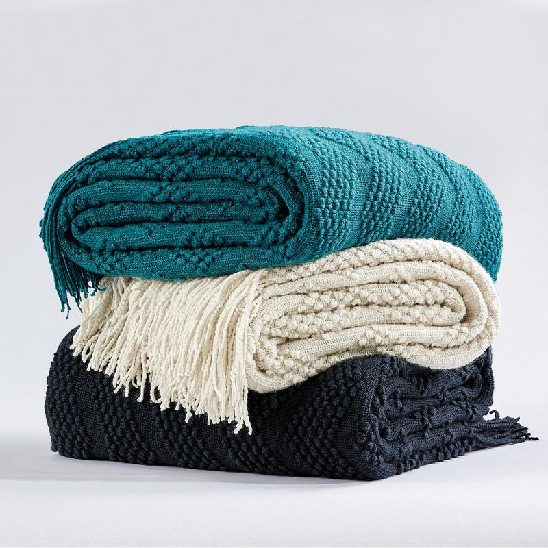 Bourina - Manta decorativa de punto para sofá, suave, texturizada, de color liso, de 50 x 60