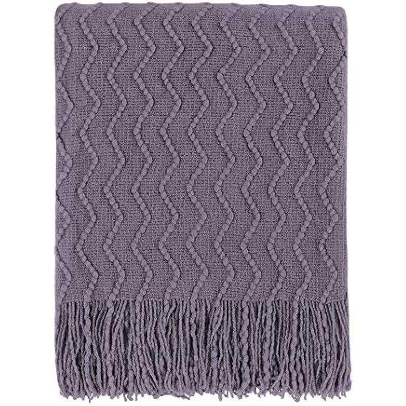 Bourina - Manta decorativa de punto para sofá, suave, texturizada, de color liso, de 50 x 60