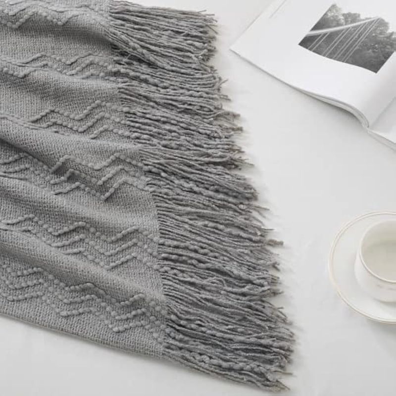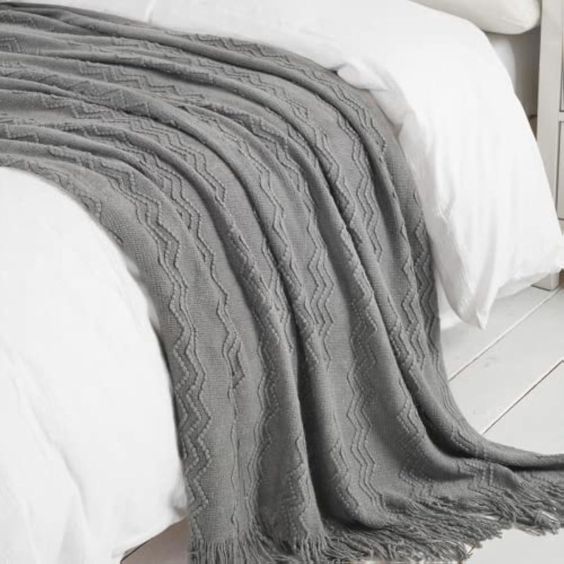 Bourina - Manta decorativa de punto para sofá, suave, texturizada, de color liso, de 50 x 60