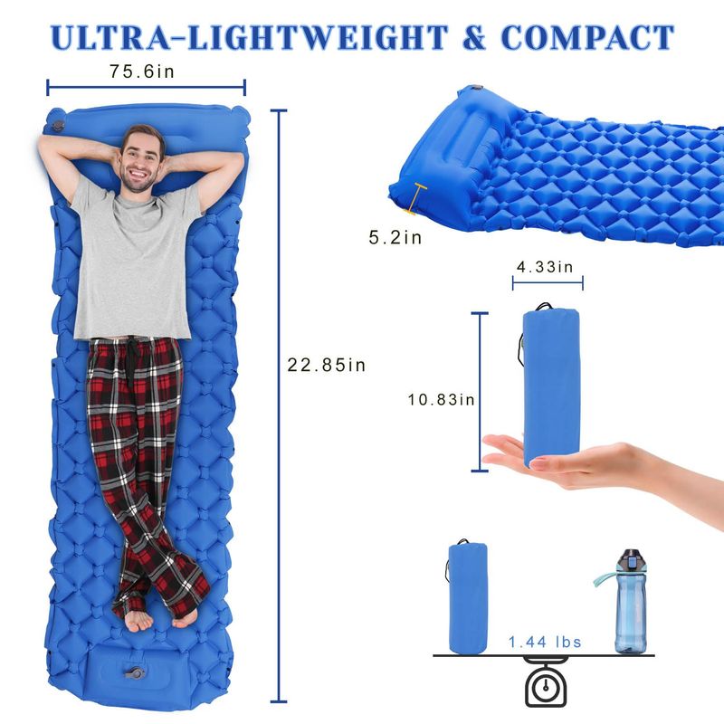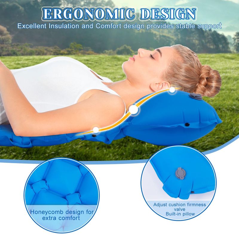 BOXEDHOME COLCHONETA INFLABLE ULTRALIGERA PARA ACAMPAR CON ALMOHADILLAS DE DORMIR INTEGRADAS PARA ACAMPAR, MOCHILEROS, SENDERISMO, VIAJES, TIENDA DE CAMPAñA, COLCHóN DE AIRE COMPACTO Y LIGERO