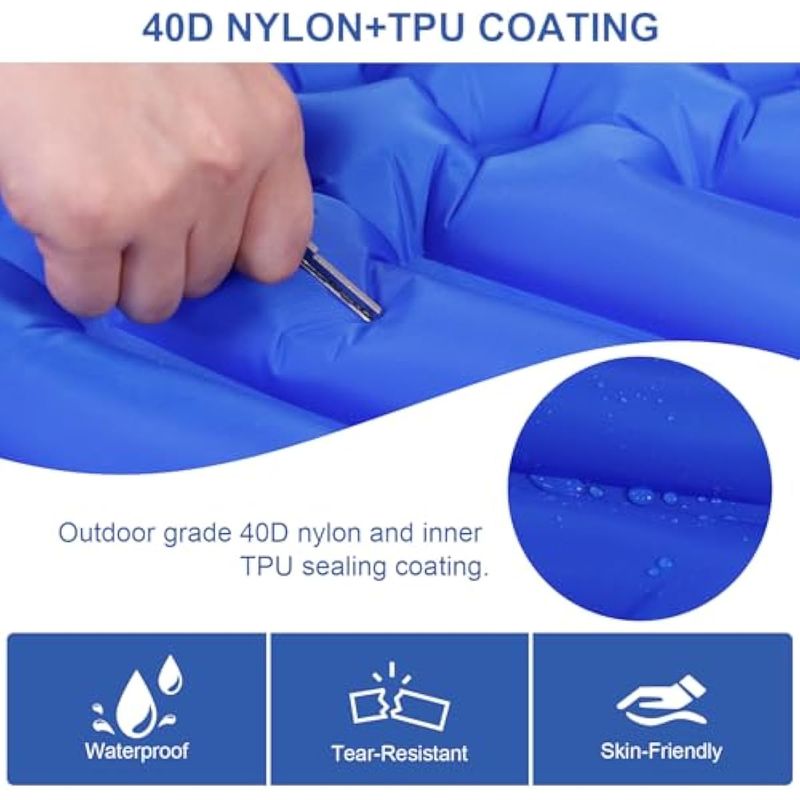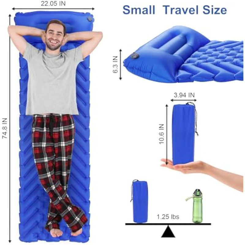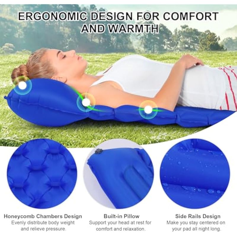 BoxedHome Colchoneta inflable ultraligera para acampar con almohadillas de dormir integradas para