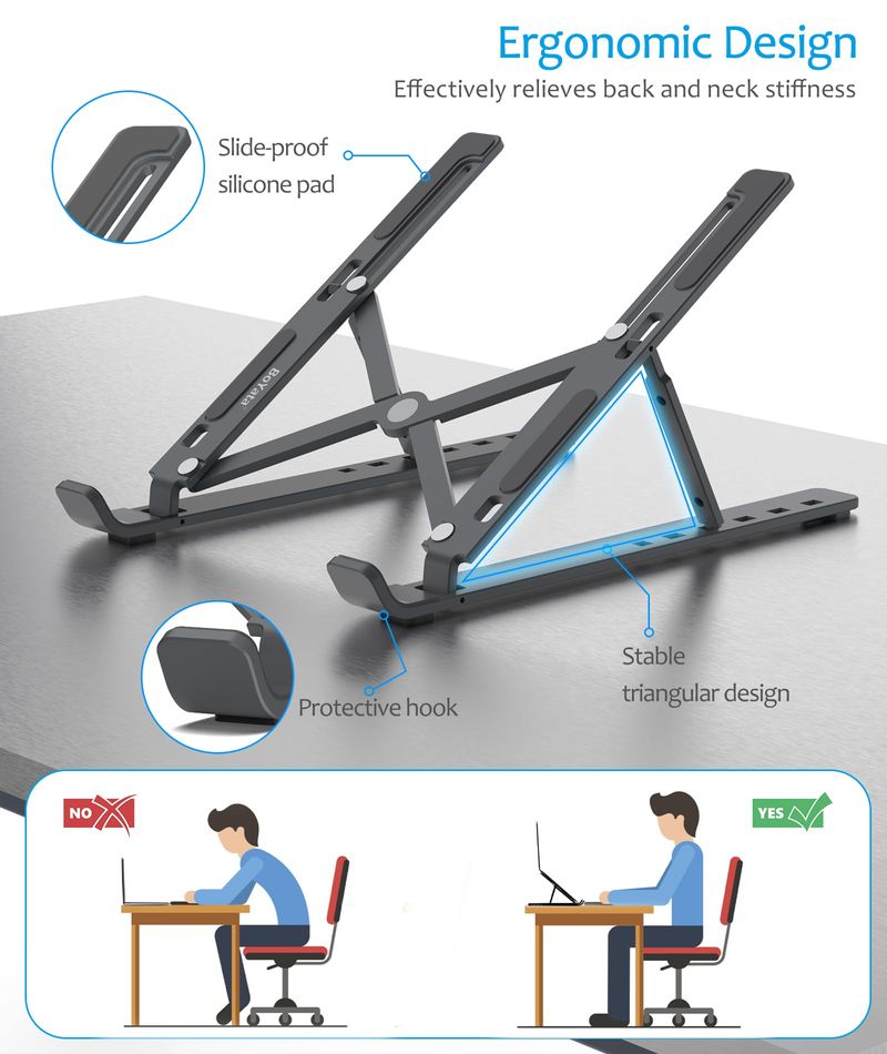 BoYata Soporte para laptop, soporte portátil para computadora de escritorio, elevador plegable de