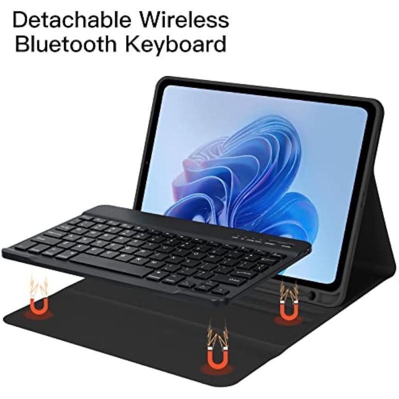??Diseño magnético y encendido automático?La funda de teclado para iPad Air de 4ª generación de 5ª generación tiene un diseño magnético. El teclado se adsorberá a la funda para que no se mueva fácilmente. La función de encendido y apagado automático permite que tu iPad entre en modo de suspensión cuando cierres la funda, lo que es ideal para ahorrar energía. Para lograr el efecto perfecto de la función de sueño-vigilia, retira el teclado inalámbrico magnético cuando cierres la cubierta, ya que el teclado con hierro evitará la atracción mutua entre los imanes.