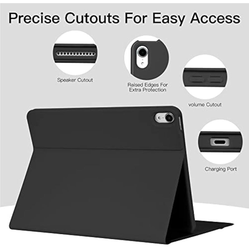 ??Ángulo de visión ajustable?La funda de teclado para iPad Air de 5ª generación tiene 3 ángulos de visión ajustables: 120°, 125°, 130°, lo que proporciona una experiencia visual adecuada y satisface diferentes necesidades.