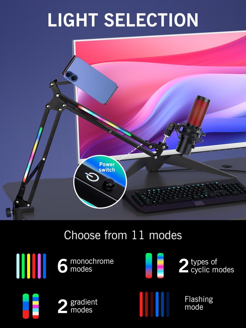 AUDIOMICROFONOSBrazo de brazo blanco para HyperX QuadCast S - Brazo de brazo de micrófono compatible con HyperX