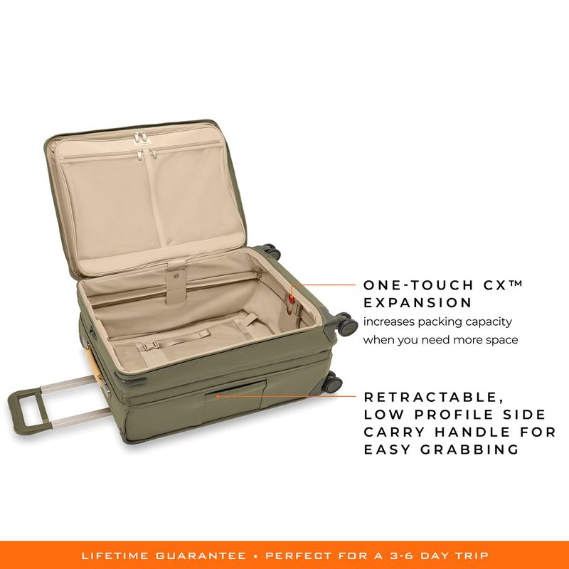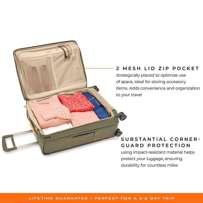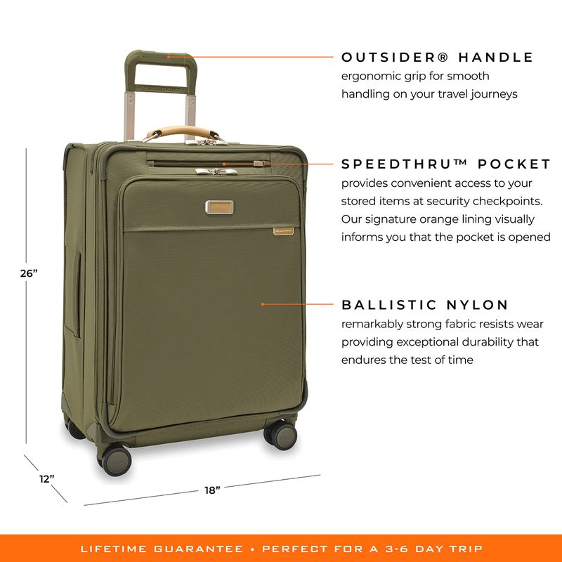 El equipaje de mano Briggs & Riley Essential de 2 ruedas 22 x 14 x 9 pulgadas cumple con las regulaciones de mano para la mayoría de las aerolíneas nacionales de Estados Unidos. El asa de tela inferior integrada y las asas laterales retráctiles de perfil bajo ofrecen diferentes formas de guardar tu equipaje. ¿Necesitas más espacio? Nuestra correa extraíble SmartLink™ te permite transportar cómodamente 2 bolsas como una sola. Simplemente coloca la barra en T de la correa de añadir una bolsa a la base de acoplamiento, luego colócala a través del asa para una segunda bolsa para mayor comodidad. La sustancial protección contra la parte superior con material resistente a los impactos ayuda a proteger tu equipaje, asegurando durabilidad durante innumerables millas. Este equipaje de mano también ofrece un gran bolsillo frontal y 2 bolsillos de malla con cremallera para optimizar el uso del espacio y almacenamiento adicional para todos tus artículos esenciales de viaje. Los paneles de ropa de primera calidad envuelven tu ropa con un mínimo de arrugas. El ajuste de las correas añade compresión, reduciendo el desplazamiento en tránsito. Las ruedas giratorias patentadas que absorben los golpes ofrecen una maniobrabilidad de 360 y un deslizamiento silencioso suave para una navegación sin esfuerzo. Diseñado con cremalleras YKK RC autoreparables que requieren una acción suave de cremallera con tiradores de cremallera bloqueables. La bolsa se puede limpiar con un paño suave y húmedo o un rodillo de cepillo adhesivo de pelusa. Si tu bolsa está rota o dañada, la repararemos de forma gratuita, no necesita prueba de compra, sin hacer preguntas.