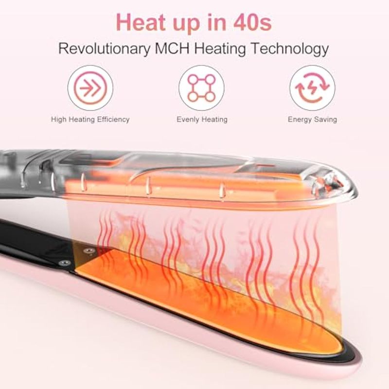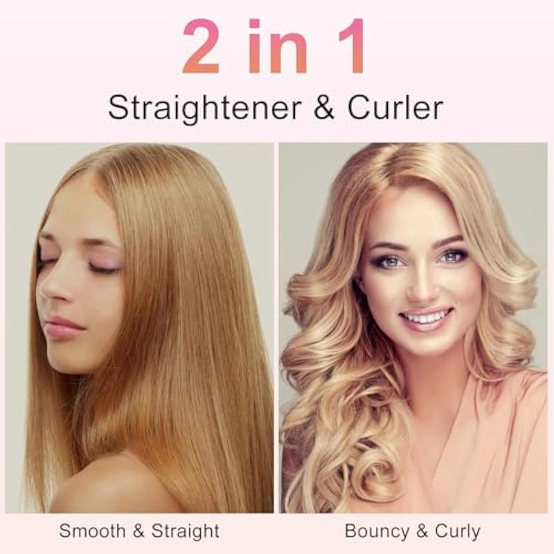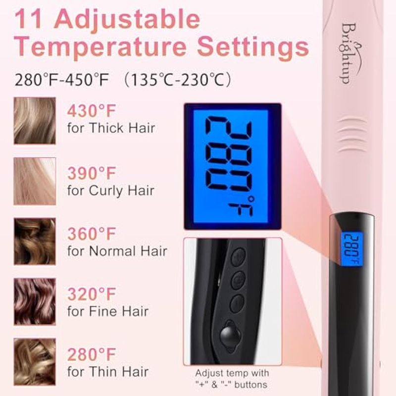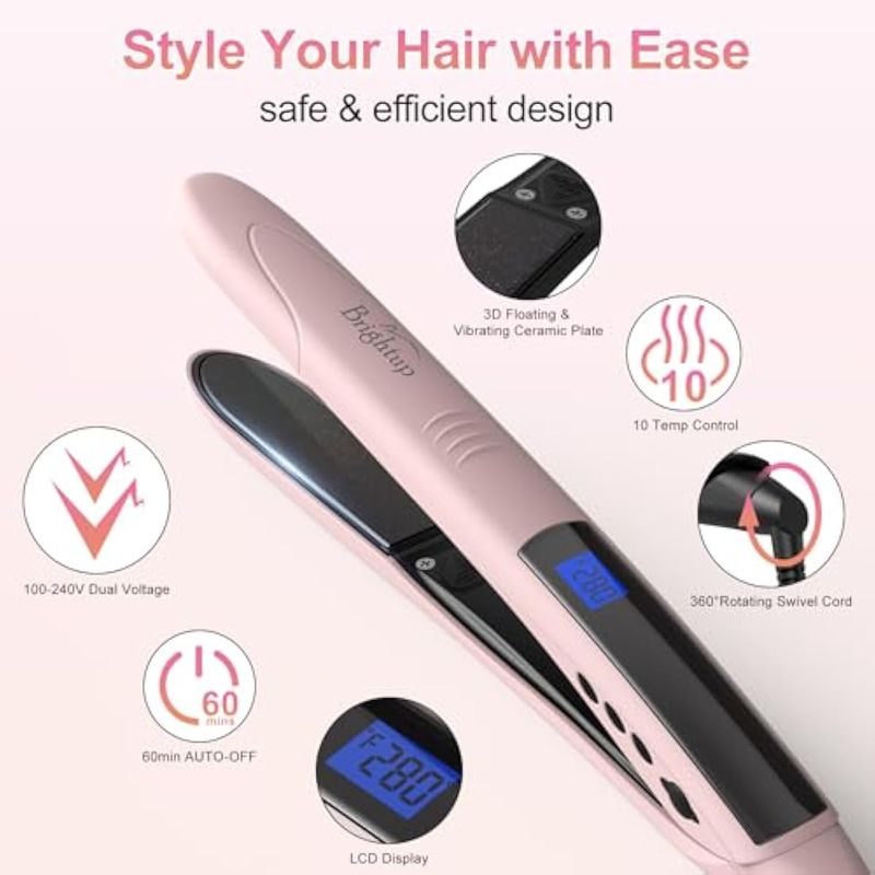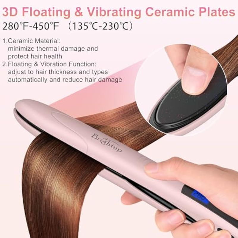 Brightup Plancha plana de cerámica, calentamiento rápido 40S, plancha de pelo y rizador 2 en 1 con