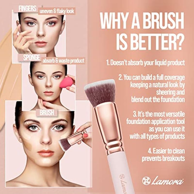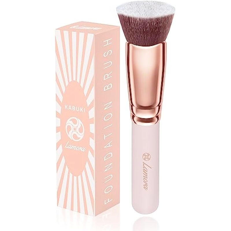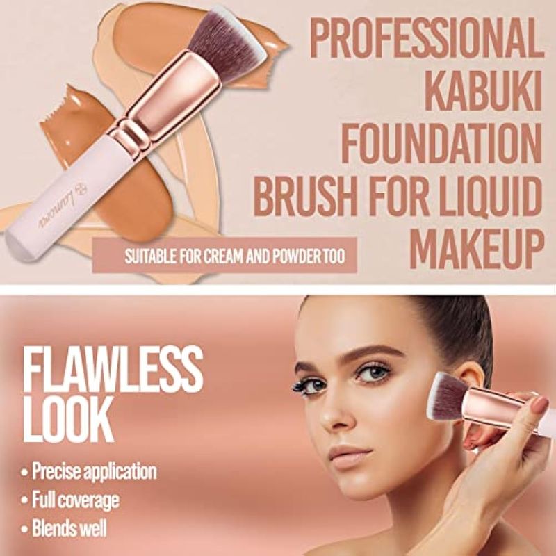 Brocha de base Kabuki de punta plana, cepillo facial de maquillaje prémium para líquidos, crema,