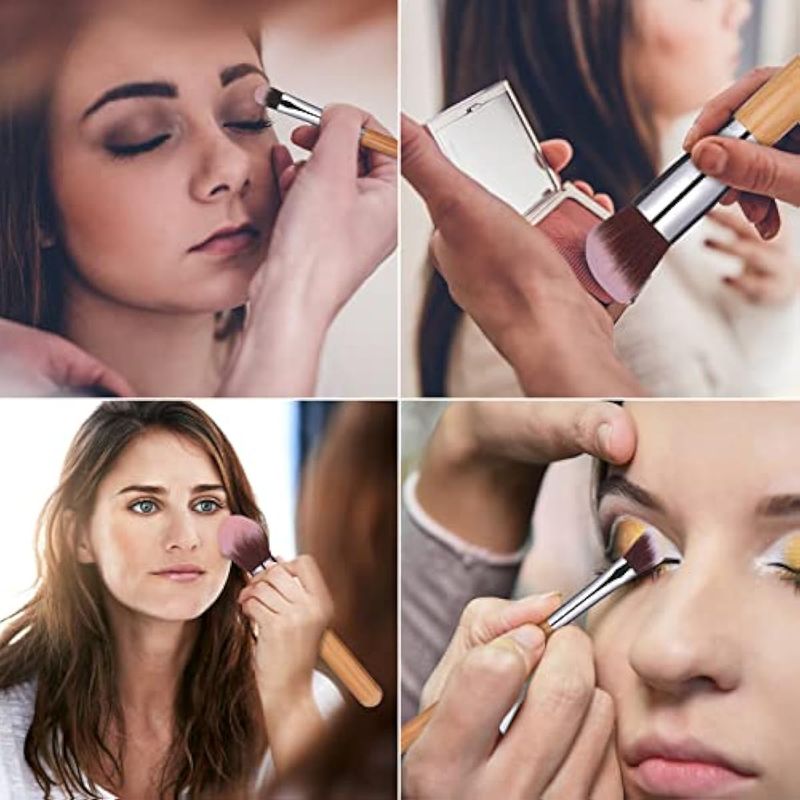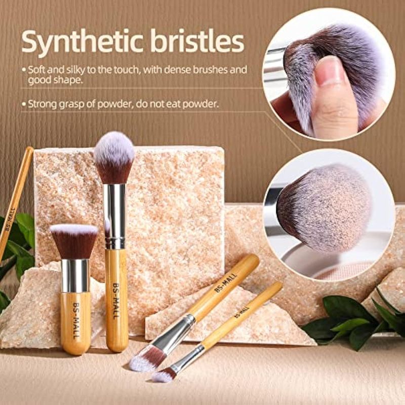 BS-MALL Juego de 11 brochas de maquillaje sintéticas de bambú Kabuki, juego de brochas para base de