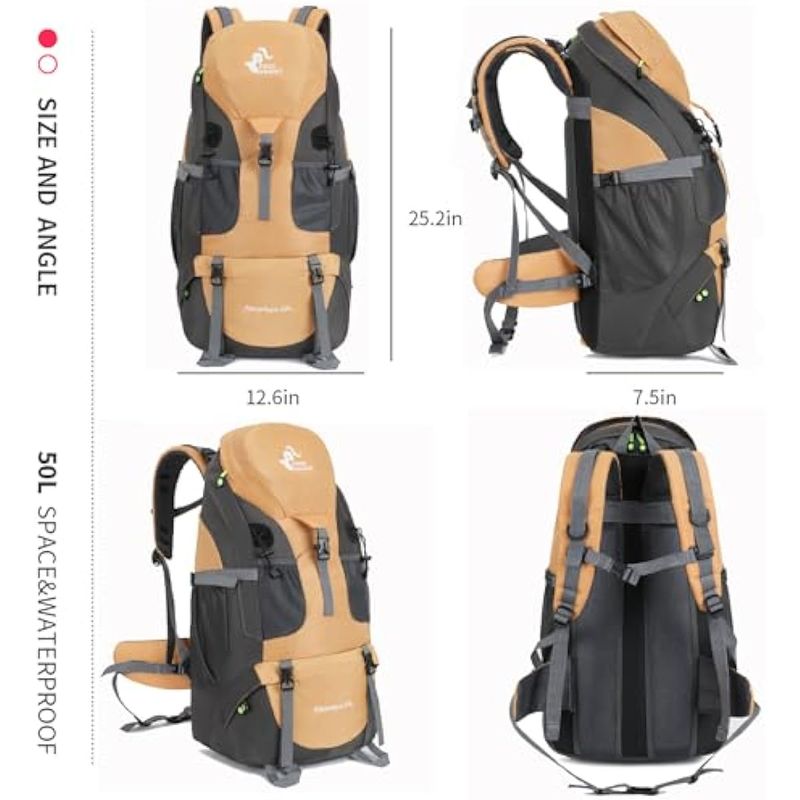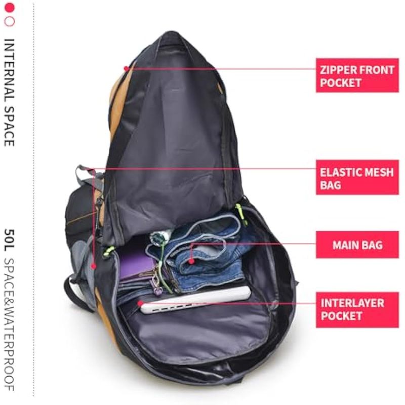 Bseash Mochila de senderismo resistente al agua de 50 L, bolsa de viaje ligera para deportes al aire