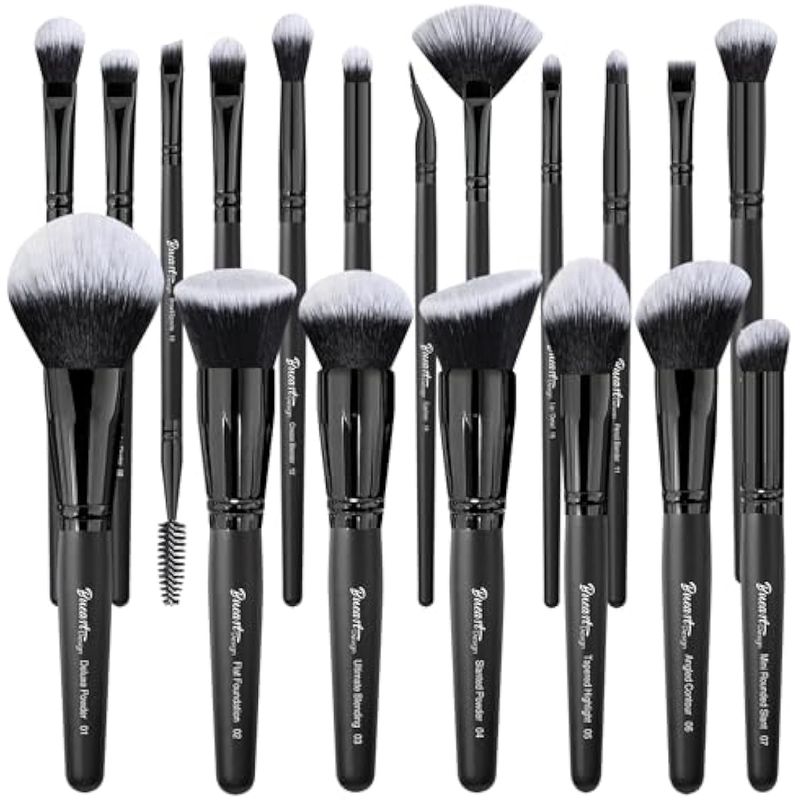 BUEART DESIGN JUEGO DE BROCHAS DE MAQUILLAJE DE CABELLO DENSO CON ETIQUETA NEGRA ULTRA SUAVE, CONTIENE POLVO GRANDE, BASE PLANA, MEZCLA DEFINITIVA, JUEGO DE BROCHAS DE MAQUILLAJE, RUBOR FACIAL,