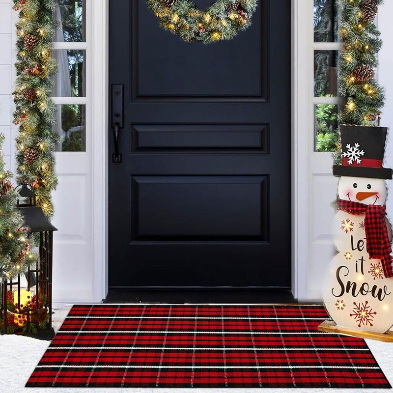 HOGARBAZARDECORACIONBuffalo - Tapete para exteriores, tapete para porche delantero, lavable a máquina, tejido de algodón