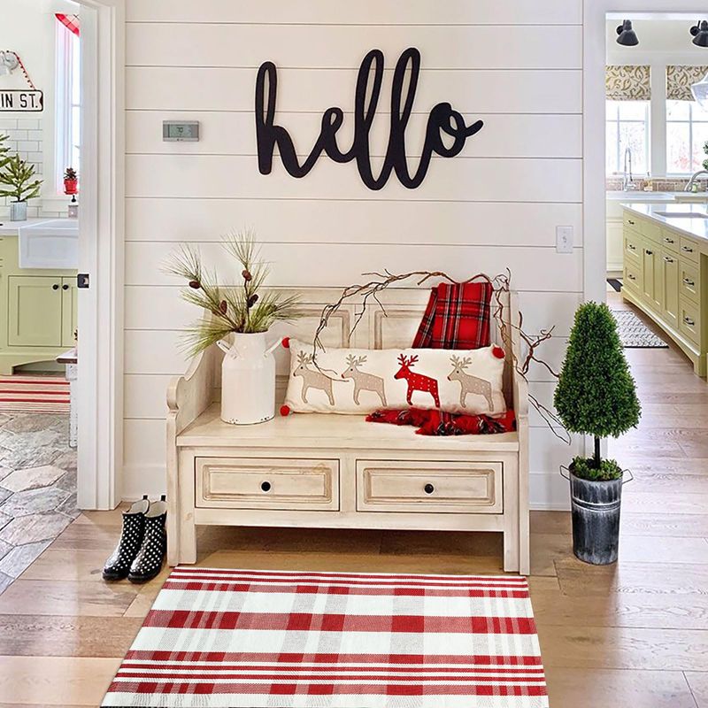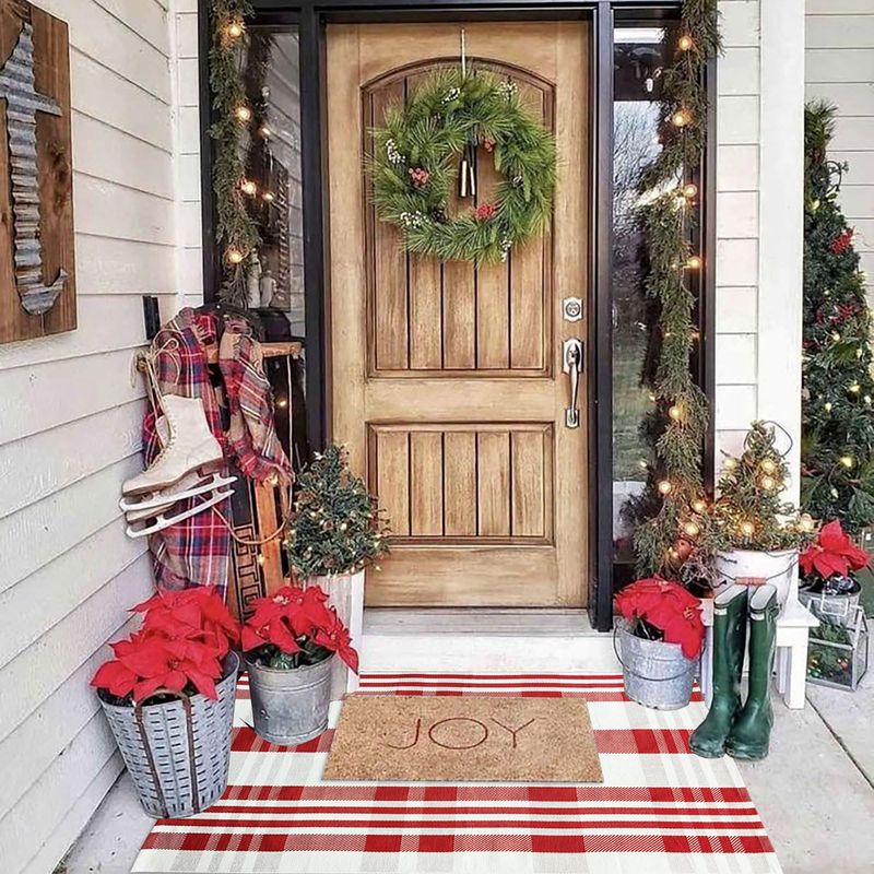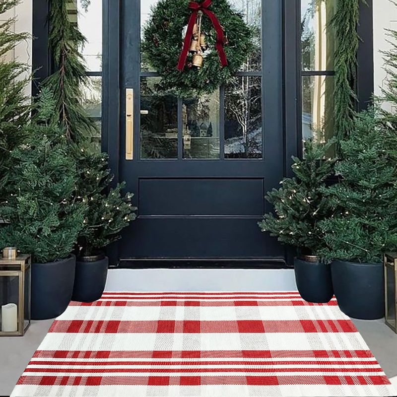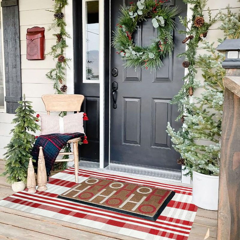 HOGARBAZARDECORACIONBuffalo - Tapete para exteriores, tapete para porche delantero, lavable a máquina, tejido de algodón