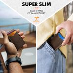 Seguridad: bloqueo RFID completo, sólido construido para evitar caídas por accidente en uso, es una cartera funcional con tamaño delgado para que puedas ir a cualquier lugar.