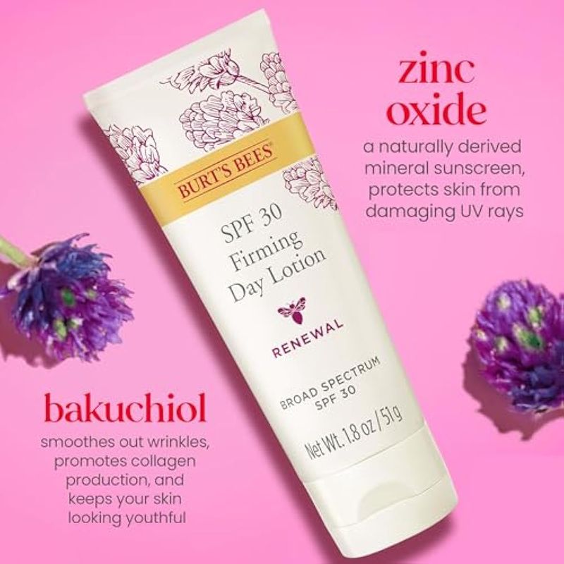 BURT'S BEES - LOCIóN FACIAL, ALTERNATIVO AL RETINOL, HIDRATANTE FACIAL, CON PROTECTOR SOLAR ANTIENVEJECIMIENTO Y SPF 30, CUIDADO DE LA PIEL REAFIRMANTE DE DíA, 1.8 ONZAS (EL PAQUETE PUEDE VARIAR)