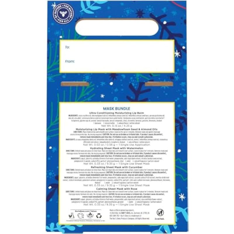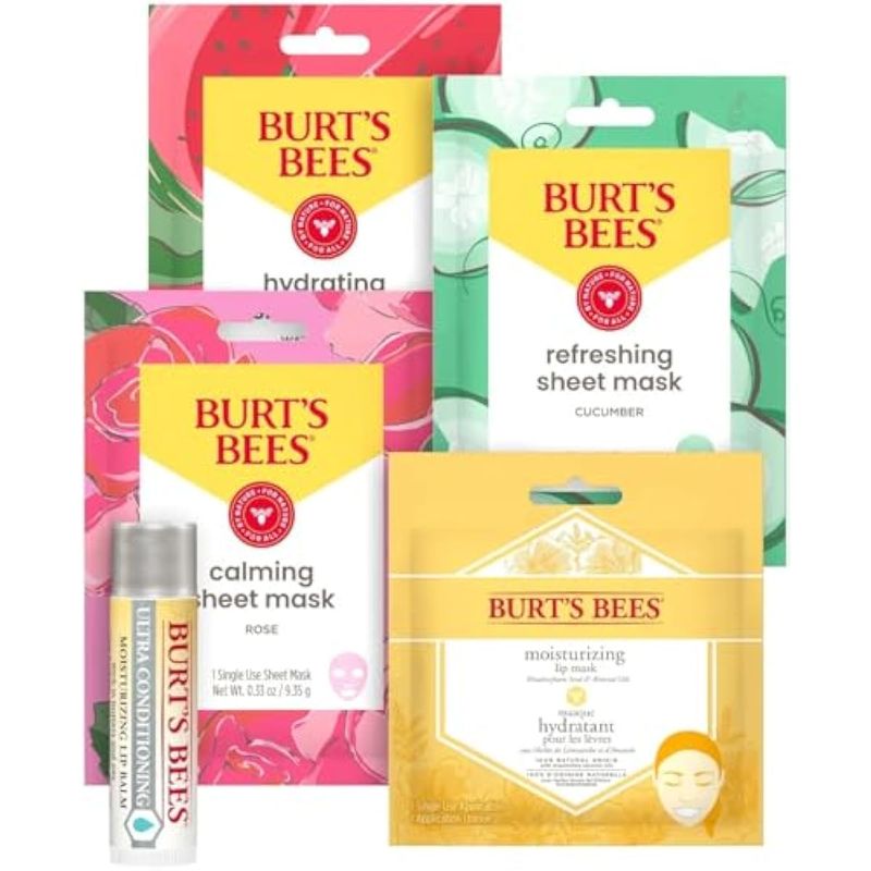 BELLEZA Y SALUDBELLEZA Y CUIDADO CORPORALCUIDADO DE LA PIELBurt's Bees Paquete de mascarilla: bálsamo labial, máscara de labios y máscara facial para regalo, 5