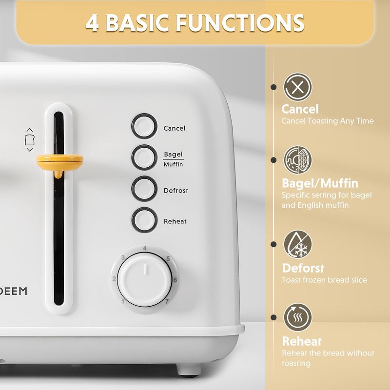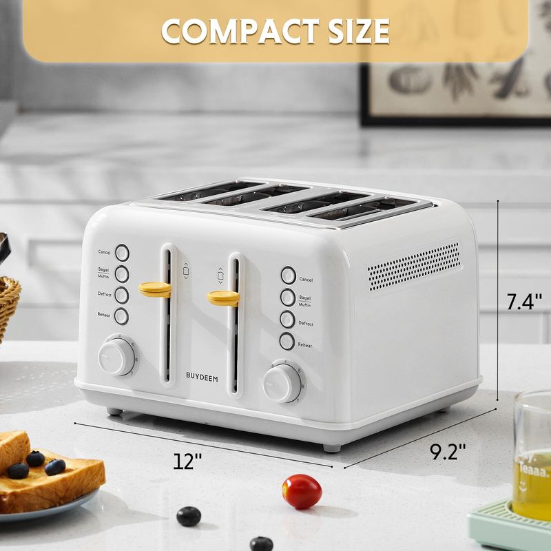 PEQUEÑOS ELECTRODOMÉSTICOSPEQUEÑOS COCINATOSTADORASBUYDEEM DT620 Tostadora de 2 rebanadas, ranuras extra anchas, acero inoxidable retro con palanca de
