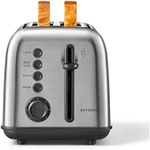 PEQUEÑOS ELECTRODOMÉSTICOSPEQUEÑOS COCINATOSTADORASBUYDEEM DT620 Tostadora de 2 rebanadas, ranuras extra anchas, acero inoxidable retro con palanca de