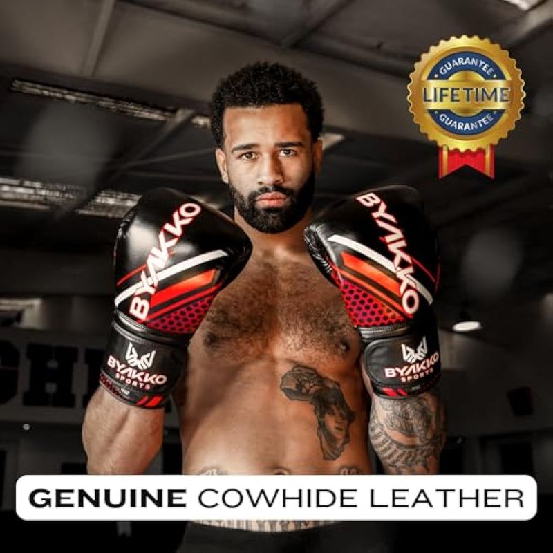 Golpea como un profesional con los guantes de cuero de vaca duraderos de Byakko Sports. Nuestro juego de guantes de perforación profesionales para todos los deportes de combate