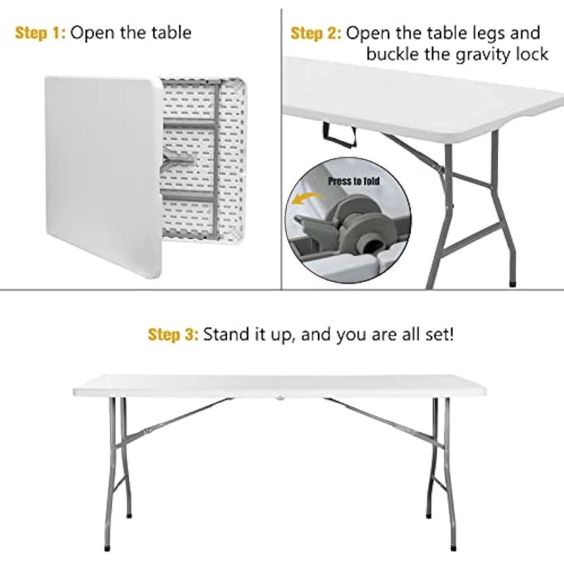 JARDÍNMUEBLES DE JARDÍNMESASByliable Mesa plegable portátil de plástico resistente de 6 pies, plegable por la mitad, mesa de