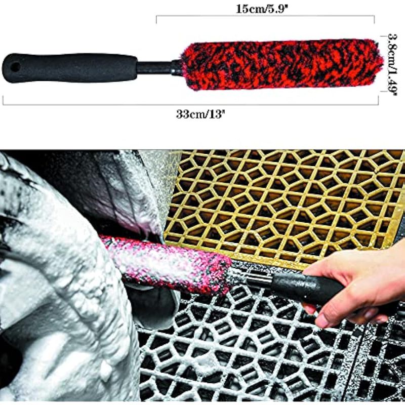 Material de alta calidad: el cepillo de limpieza de ruedas está hecho de brsuh suave sintético, resiste cualquier jabón o limpiador que utilices