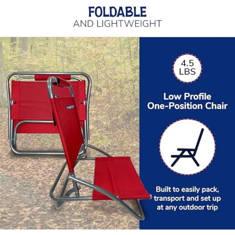 ASIENTO BAJO: Esta silla exterior proporciona un asiento cómodo y portátil, y está diseñada para que te sientas bajo el suelo para acomodar salas de conciertos y sentir la arena en tus pies en la playa; cabe cómodamente debajo de una sombrilla y tienda de campaña típicas