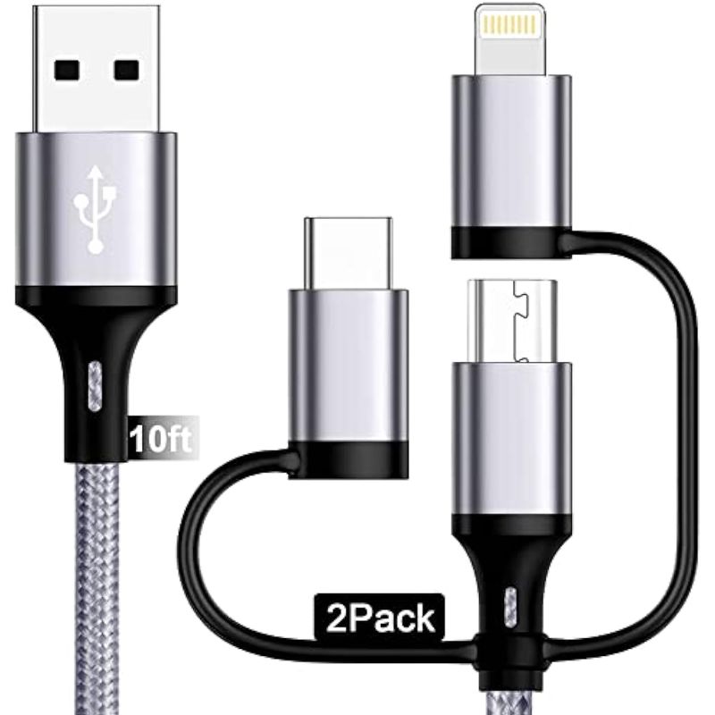 CABLE DE CARGA RáPIDA MúLTIPLE CON CERTIFICACIóN MFI 3 EN 1 DE NAILON TRENZADO, CARGADOR MúLTIPLE CON LIGHTNING/TIPO C/CABLE DE CARGA MICRO USB DE SINCRONIZACIóN PARA IPHONE, IPAD, SAMSUNG GALAXY, HUAWEI, LG, SONY, HTC, PIXEL (2 UNIDADES/10 PIES)