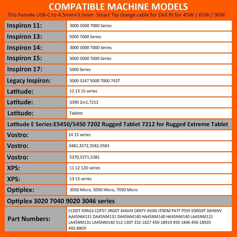 INFORMÁTICANOTEBOOKSCable de carga USB C hembra a punta inteligente de 0.177 in para cargador de portátil Dell 90 W 65 W