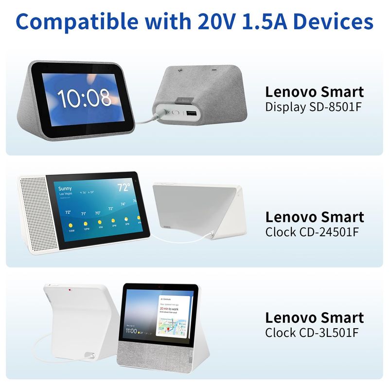 Compatibilidad: Lenovo Smart Assistant - Type 90GX; Lenovo Smart Assistant Infinity Edition - Type 90GY ; Lenovo Smart Clock 1st Generation CD-24501F - Type ZA4R; Lenovo Smart Display 7 CD-17302F - Tipo ZA5K