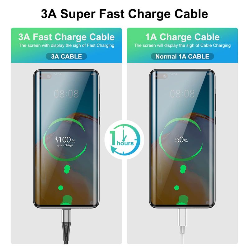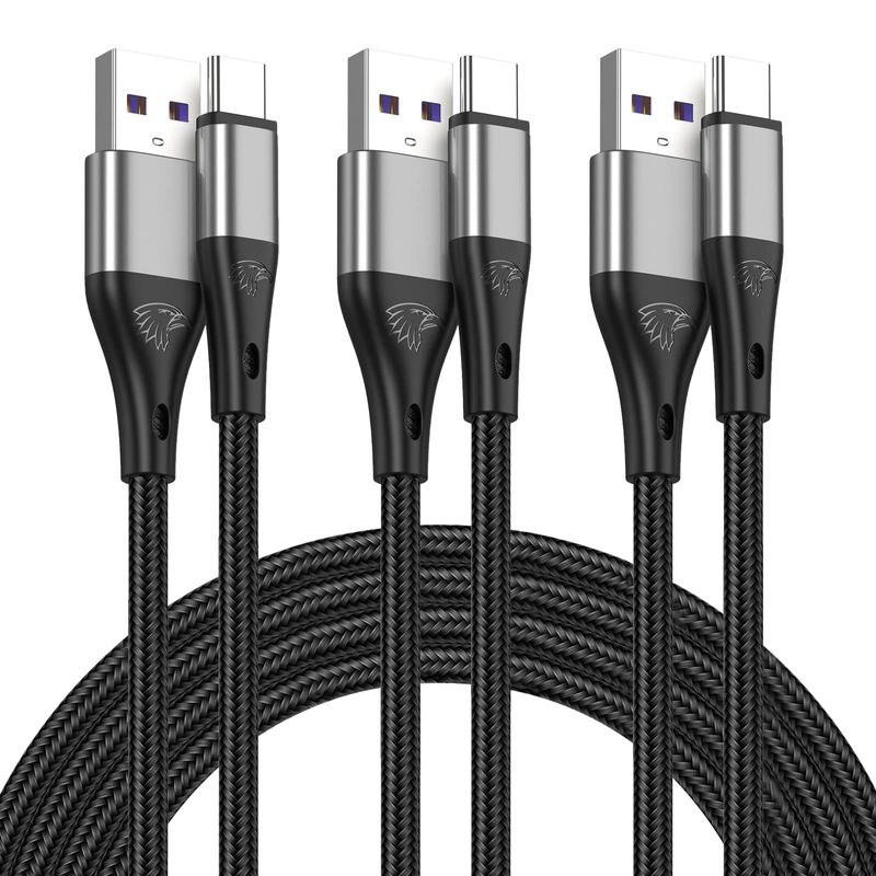 Cable USB tipo C de carga rápida, paquete de 3 cables de carga rápida de nailon trenzado 3A de 10