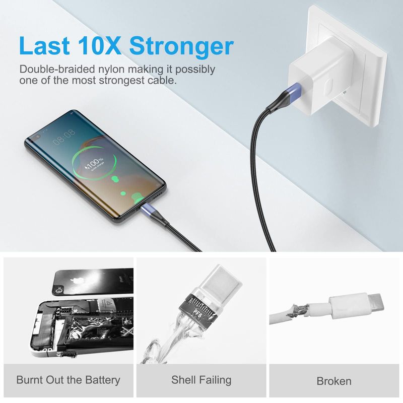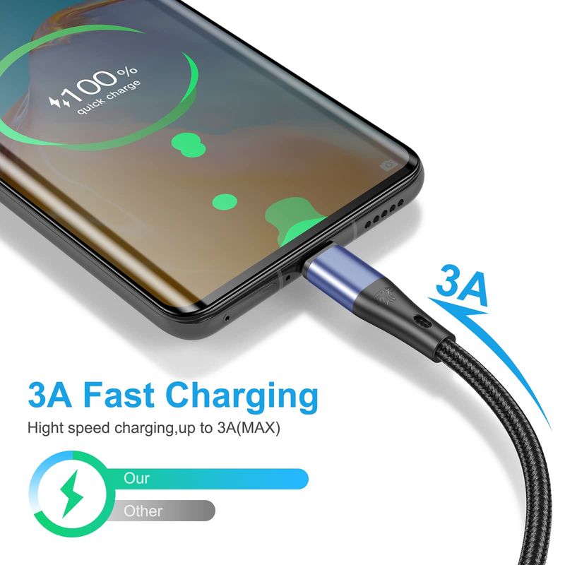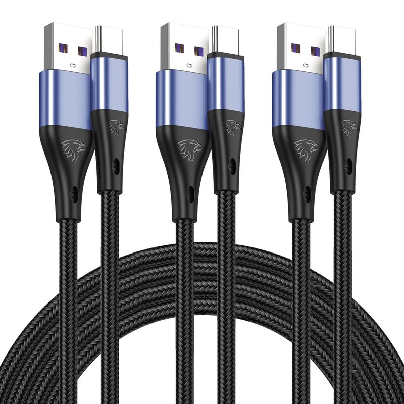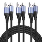 Cable USB tipo C de carga rápida, paquete de 3 cables de carga rápida de nailon trenzado 3A de 10