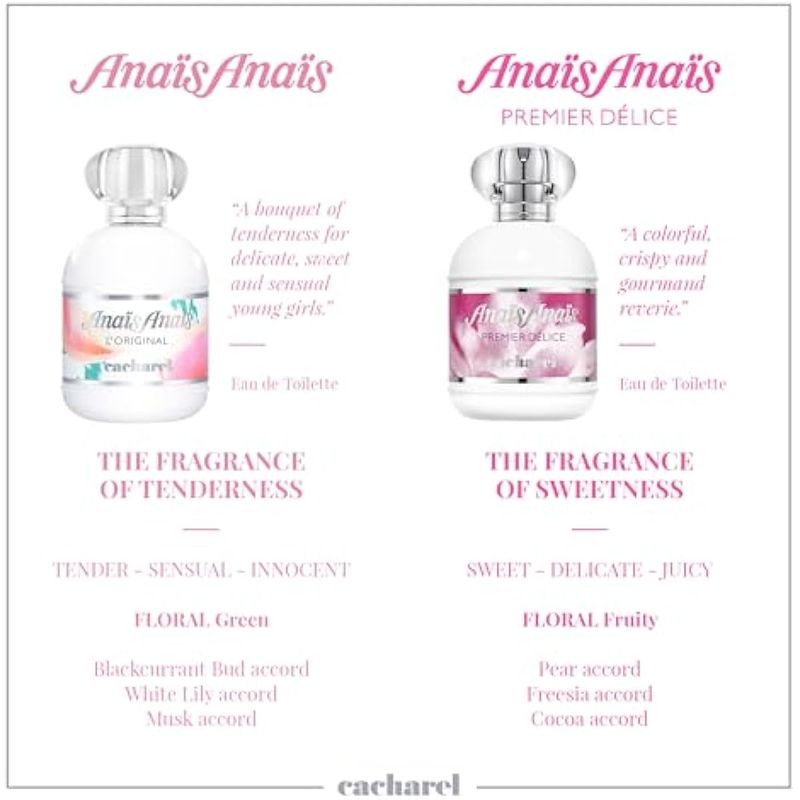Cacharel Anais Anais - Perfume en espray para mujer, fragancia de grosella negra, lirio blanco y