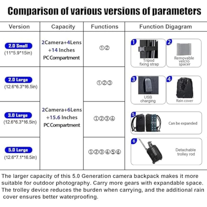 TV Y VIDEOCÁMARASCÁMARAS DE VIDEOCADeN - Mochila para cámara profesional DSLR / SLR sin espejo, resistente al agua, maletín